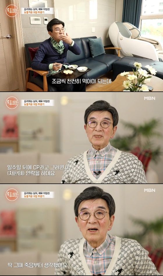 배우 이정섭이 위암으로 위 절제술을 받았다고 밝혔다.