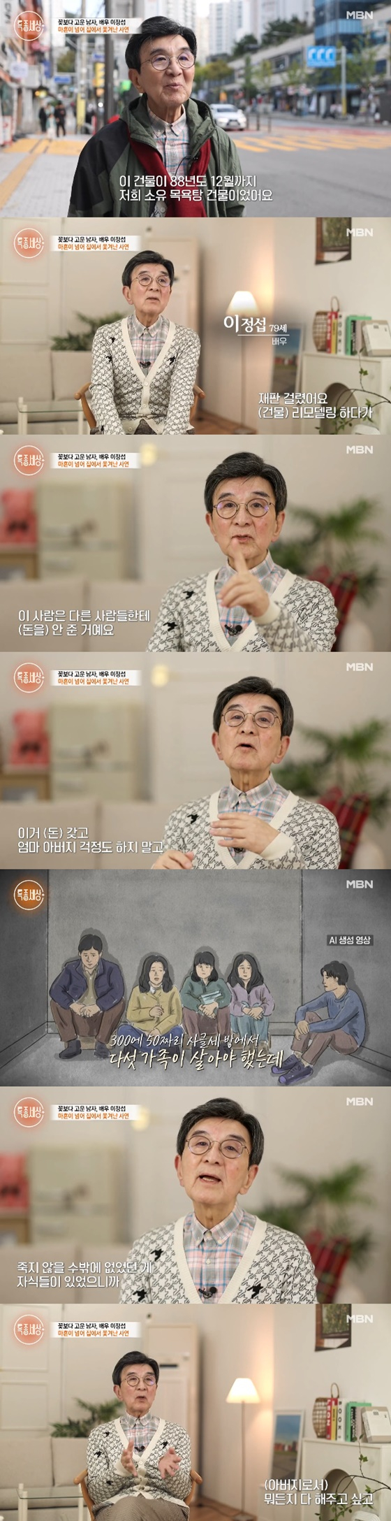 이정섭은 과거 건물을 날린 씁쓸한 기억도 떠올렸다. 그는 1988년 12월까지 자신이 소유한 목욕탕 건물이 있었다고 밝혔다.