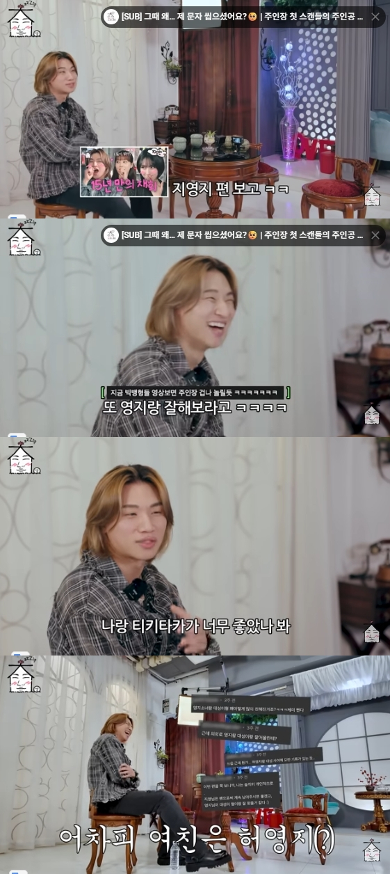 이에 제작진은 "근데 왜 지영 씨가 아니고 영지 씨냐"며 의문을 제기하자 대성은 "형이 보기에는 (영지가) 나랑 티키타카가 너무 좋았나 보다"라고 답했다. 그러자 제작진은 해당 영상의 댓글을 언급하며 "이렇게 있어도 결국엔 가운데 있는 애(허영지)랑 잘된다고 하더라"라고 말해 현장을 웃음바다로 만들었다.