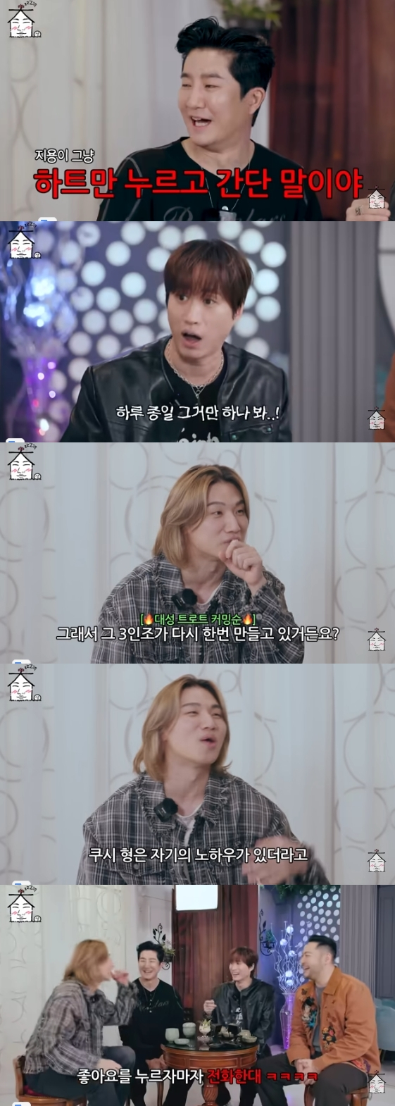 이어 "쿠시 형은 자기만의 노하우가 있다면서 인스타그램을 보다가 지용이 형이 '좋아요'를 누르자마자 전화한다고 한다. 그러면 받는다더라"라고 말해 현장을 웃음바다로 만들었다.