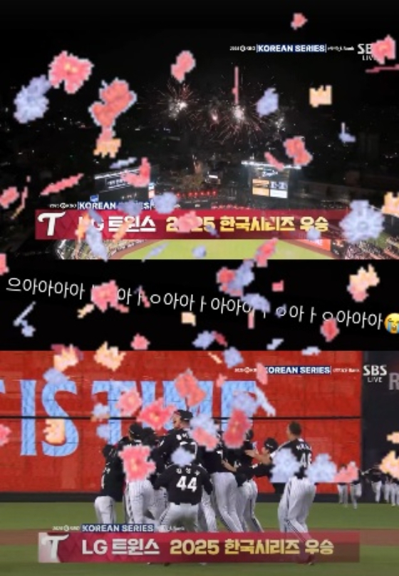 공개된 사진 속에는 LG트윈스의 2025 한국시리즈 우승 순간이 담겼다. 그는 폭죽이 터지는 효과를 넣으며 함께 기뻐했다. 그는 경기 직관을 많이 가는 LG의 찐팬으로 알려졌다.
