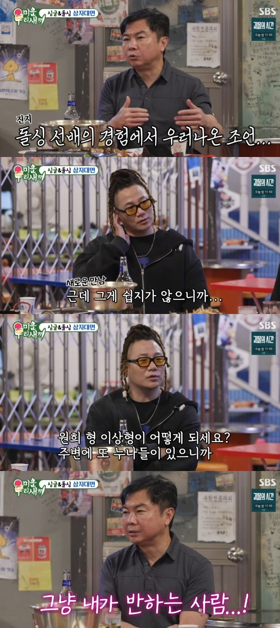 2일 방송된 SBS 예능 프로그램 '미운 우리 새끼'에는 김희철이 '돌싱 듀오' 임원희, 윤민수와 특별한 만남을 가졌다.