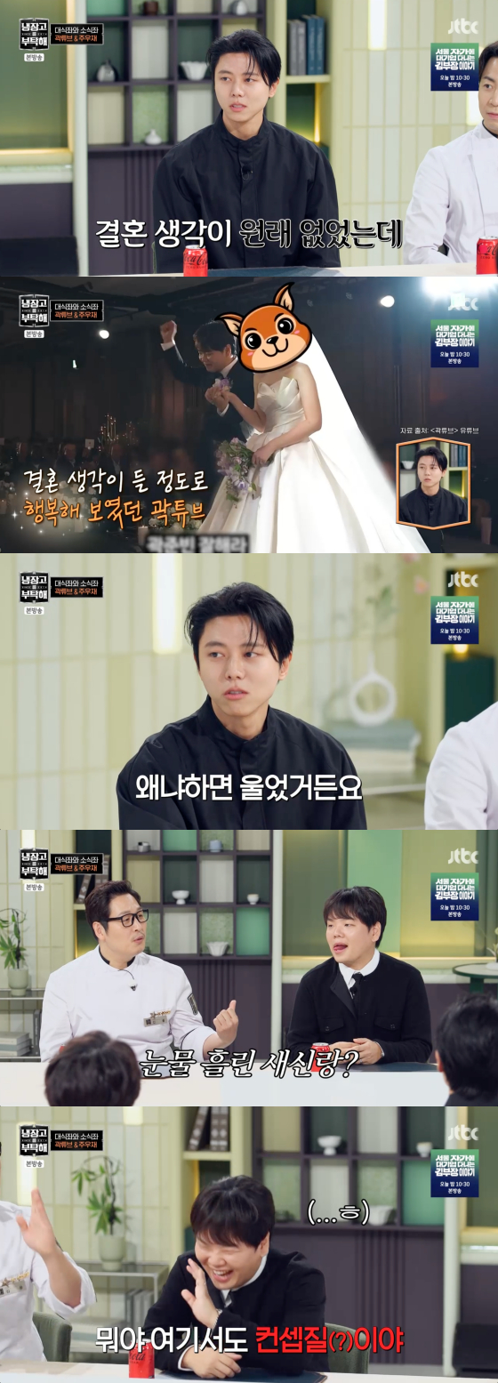이에 곽튜브는 당황하면서도 "맞다. 본식 가니까 그 부분이 또 슬프더라. 그래서 눈물이 난 것"이라고 해명했다.
