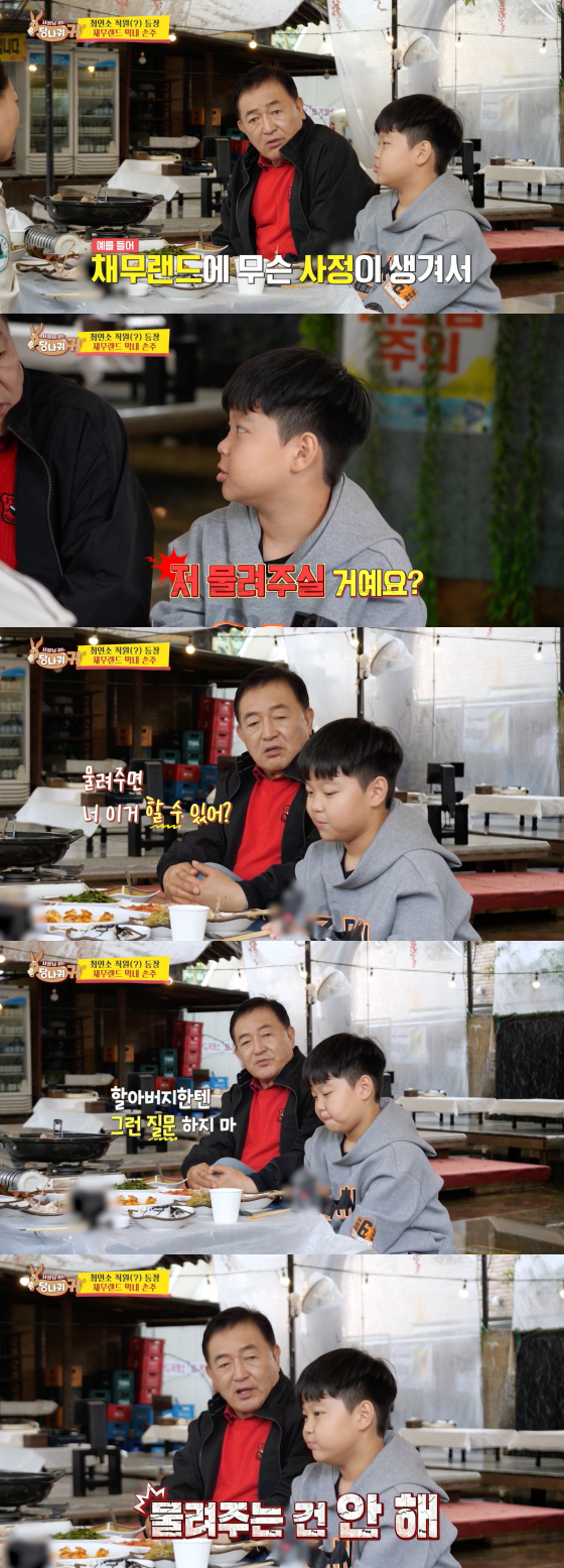 임채무는 "곤란한 질문을 하냐. 할아버지한테 그런 질문하지 마라. 할아버지는 물려주는 건 안 한다"고 단호하게 답했다.