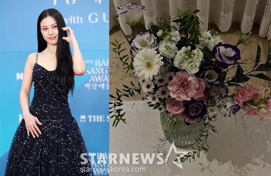 공개된 사진 속에는 화병에 담긴 꽃다발이 담겼다.
