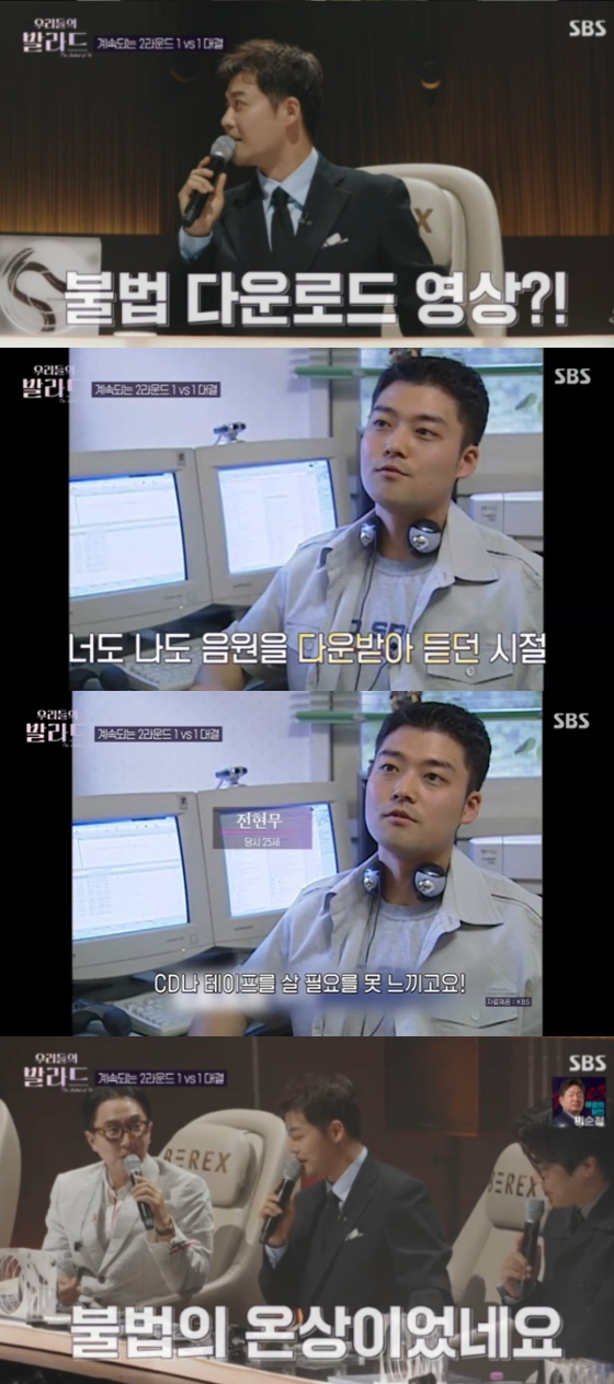 이내 전현무가 언급한 뉴스 영상이 자료 화면으로 공개됐다. 영상 속 25세 대학생 전현무는 뉴스에 출연해 "CD나 테이프를 살 필요를 못 느낀다. 요즘에는 자기가 CD를 구워서 나만의 프로젝트 앨범으로 생일 선물을 많이 한다"고 인터뷰를 하며 직접 불법 다운로드 한 음악들로 CD를 제작하는 모습까지 보여줬다.