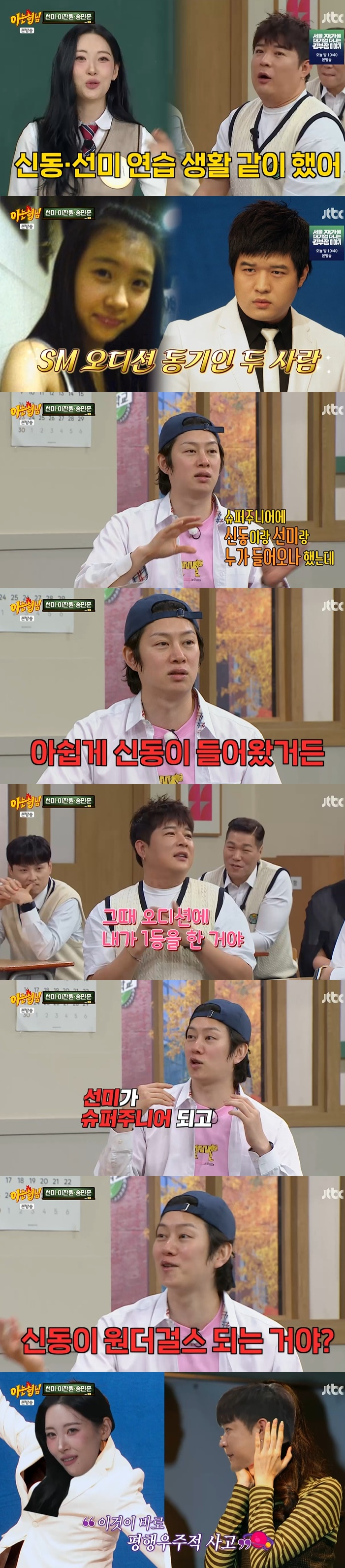 신동은 "그때 오디션에 내가 1등을 해서 슈퍼주니어로 데뷔했고, 선미는 JYP에서 데려갔다"라고 설명했다.