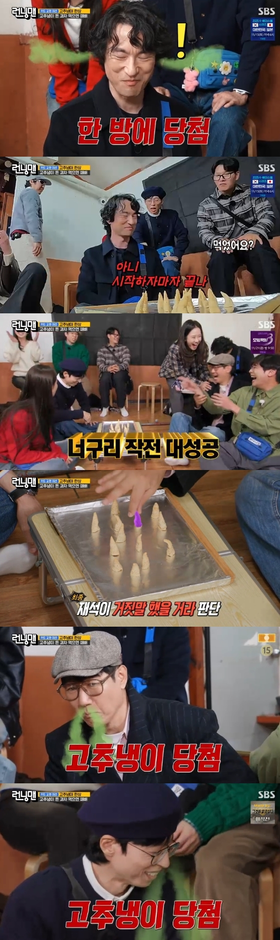 그러나 뒤이어 게임에 나선 유재석 역시 한방에 고추냉이 과자를 집어 들며 현장을 웃음바다로 만들었다. 상대 팀인 지석진은 유재석이 골라준 고추냉이 과자를 의심 없이 선택해 심리 게임에서 패배했다.