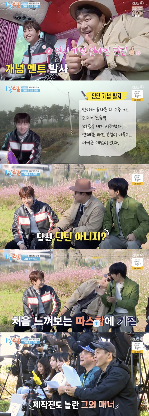 9일 방송된 KBS2TV 예능 프로그램 '1박 2일 시즌4'에서는 충청북도 단양·제천으로 떠난 여섯 멤버의 '지금 이 가을' 특집 첫 번째 이야기가 그려졌다.