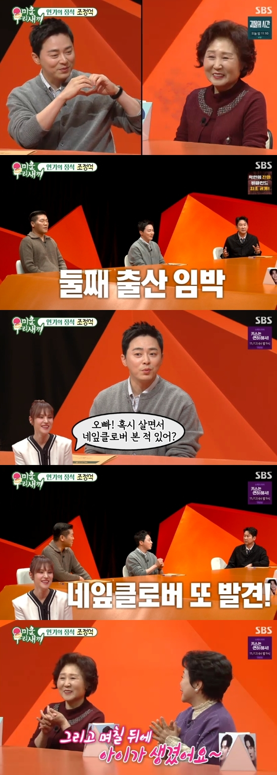그런가 하면 조정석은 둘째 준비 당시 겪었던 신비한 경험을 털어놔 눈길을 끌었다. 그는 산책 도중 평소 한 번도 보지 못했던 네 잎 클로버를 우연히 찾았고, 이튿날 거미 역시 네 잎 클로버를 발견한 뒤 둘째를 임신했다고 밝혔다. 자연스럽게 조정석은 둘째의 태명을 '네잎'이라고 짓게 됐다고 말해 감탄을 자아냈다.