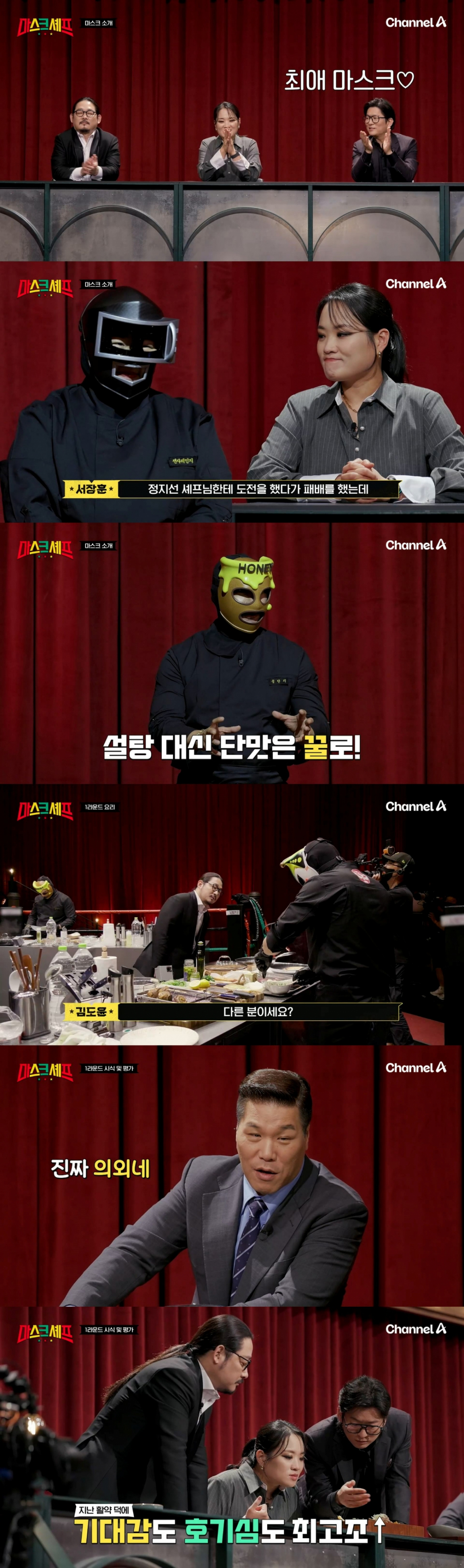 '마스크 셰프'는 마스크로 정체를 감춘 도전자들이 오직 맛 하나만으로 승부하는 신개념 요리 대결 프로그램. 서장훈이 MC, 강레오, 김도윤, 정지선 셰프가 심사위원으로 나서 마스크를 쓴 정체 모를 요리사들의 요리를 맛보고 매주 1등을 가리는 방식으로 진행된다.