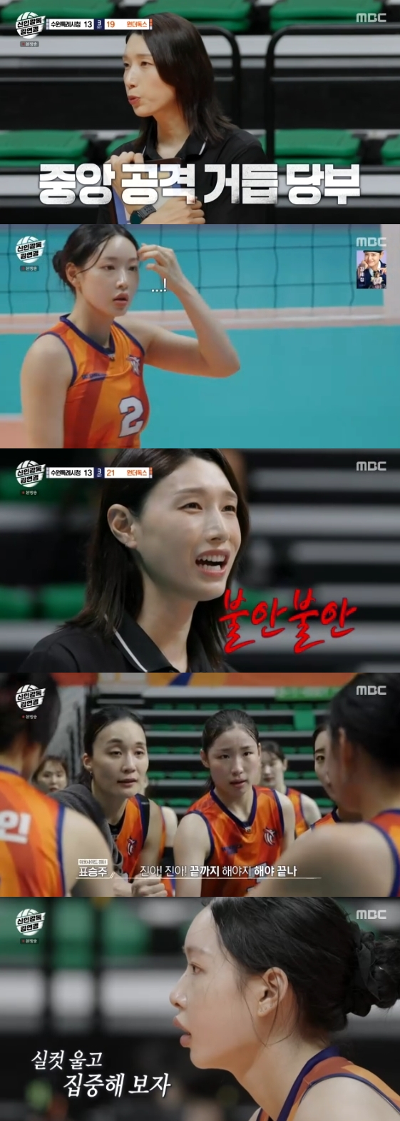 9일 방송된 MBC 예능 프로그램 '신인감독 김연경'에는 '필승 원더독스'가 실업 배구 최강팀 수원특례시청 배구단과 맞대결을 펼치는 모습이 그려졌다.