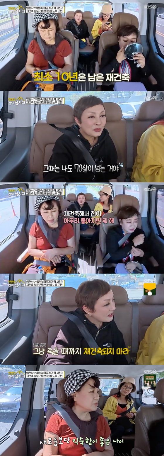 10일 방송된 KBS 2TV 예능 프로그램 '박원숙의 같이 삽시다'에서는 홍진희가 자신이 살고 있는 아파트 재건축에 대한 생각을 털어놨다.