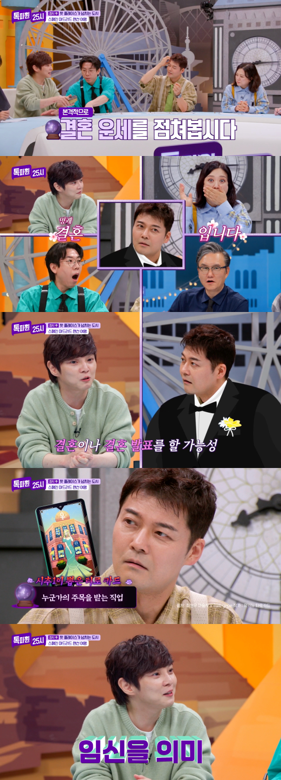 전현무가 깜짝 놀라며 "1년 안에?"라고 되묻자 최현우는 "내년까지 보는 거니까 결혼운이나 결혼 발표를 한다고 보면 된다"고 설명했다.
