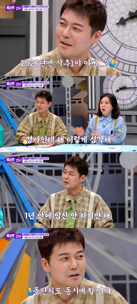 그러자 전현무는 당황한 기색을 하며 "1년 안에 임신을 한다는 거냐. 1년 안에 임신 안 하기만 해봐라. 나 임신할 거다"고 으름장을 놔 웃음을 자아냈다.
