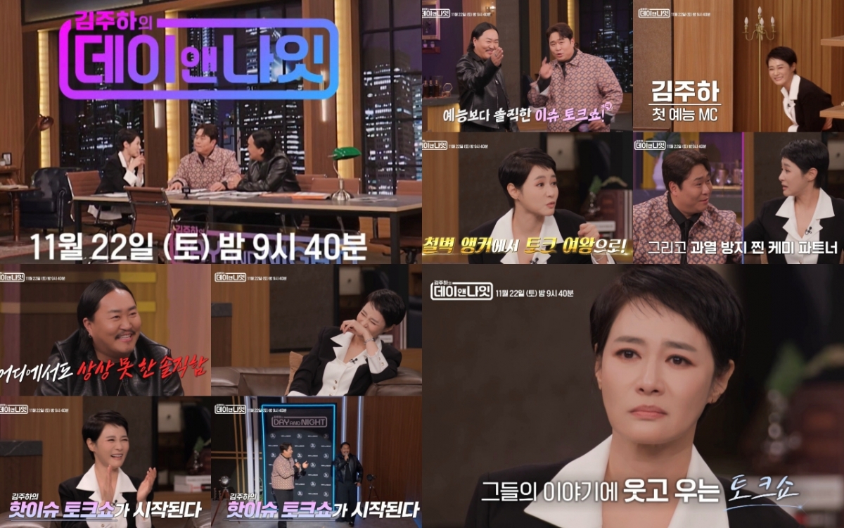오는 22일 첫 방송되는 MBN '김주하의 데이앤나잇'은 '낮과 밤, 냉정과 열정, 정보와 감동'을 내세운 신개념 이슈메이커 토크쇼다. 매거진 오피스 '데이앤나잇' 편집국을 콘셉트로 김주하가 편집장, 문세윤과 조째즈가 에디터가 되어 각계각층 셀럽들을 인터뷰하고 다양한 현장을 직접 취재하는 형식을 통해 새로운 형태의 '토크테인먼트'를 선보인다.