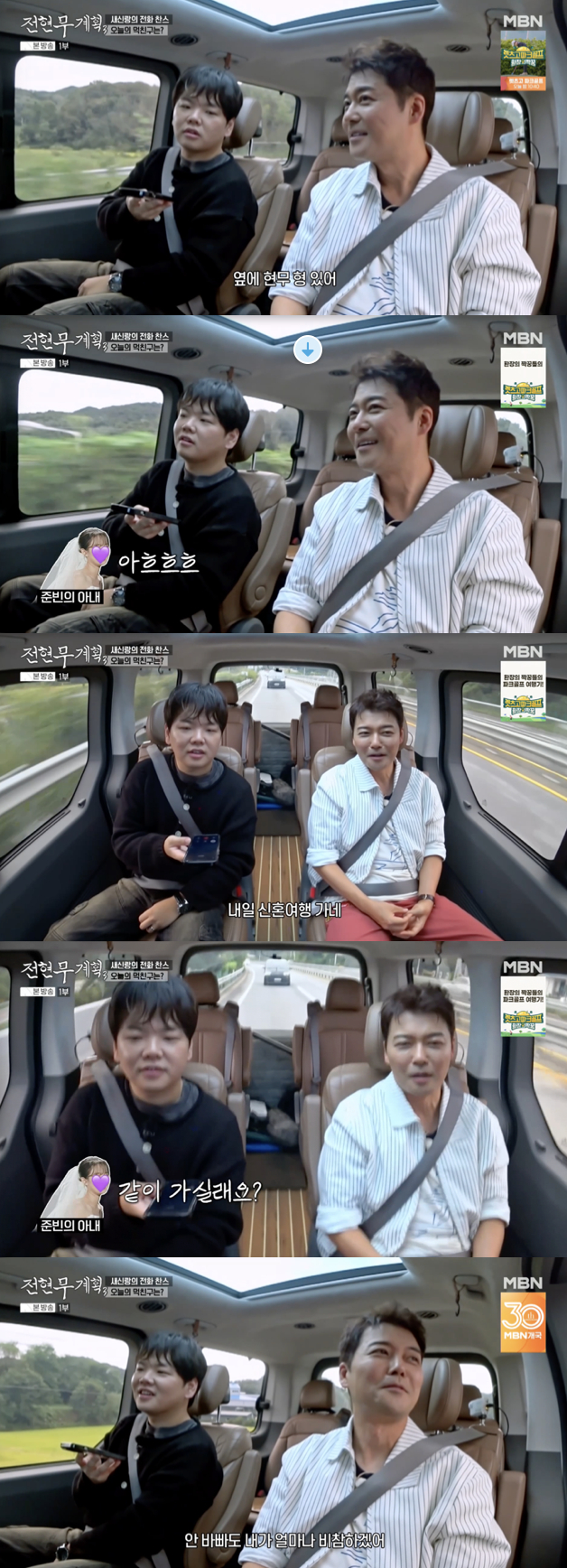 전화를 받은 곽튜브 아내에게 곽튜브는 "촬영 중이다. 옆에 현무 형 있다"라고 말했고, 전현무는 "제수 씨 안녕~?"이라며 다정하게 인사를 전했다. 곽튜브 아내는 밝게 웃으며 응답했고, 전현무는 "내일 신혼여행 가네? 좋겠다. 날씨 좋더만"이라며 안부를 건넸다.