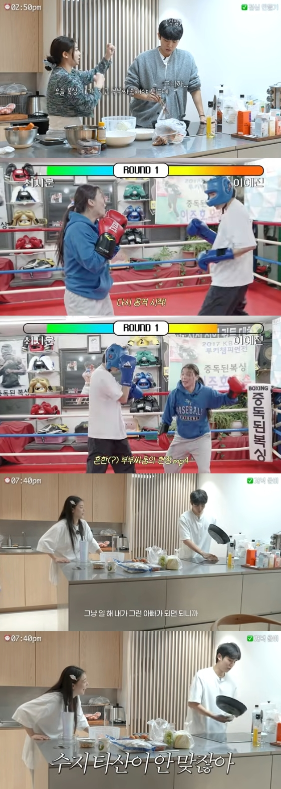 최시훈은 점심 식사를 마친 뒤 아내와 함께 복싱장에 가기로 한 스케줄을 전하며 "그동안 쌓아놨던 한을 오늘 풀려고 한다. 기다리고 기다렸는데 어지럽다고 밑밥을 깔았다"라고 인상을 찌푸렸다. 이에 에일리가 "쌓인 게 있냐"고 물었고, 최시훈은 무언의 눈빛으로 응수해 웃음을 자아냈다.