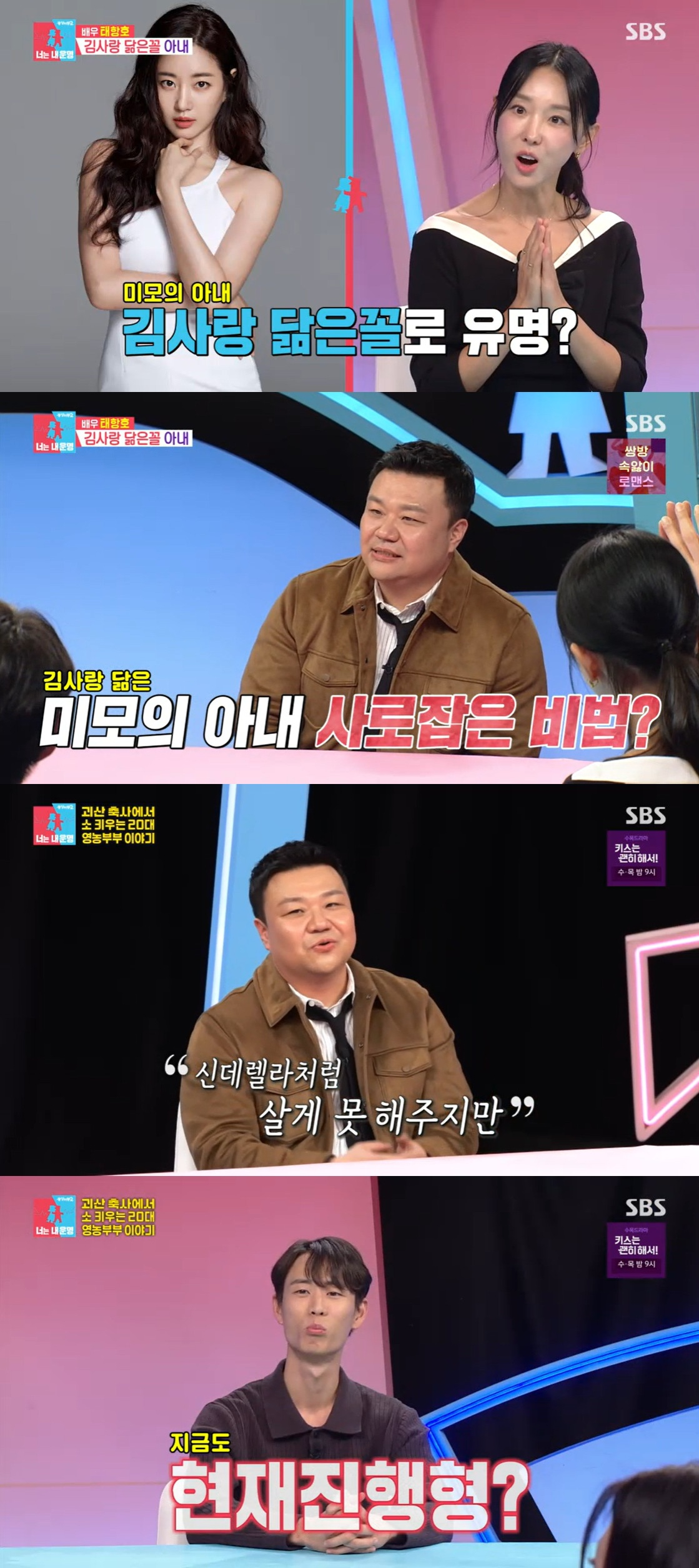 서장훈은 태항호에게 "현실판 미녀와 야수라고 하더라. 아내분이 김사랑을 닮았다는 얘기가 있던데"라고 물었다. 태항호는 "아무래도 우리 같은 과, 못생긴 과는 진실과 꾸준함과 성실함, 헌신(이 필요하다)"라고 말했다.