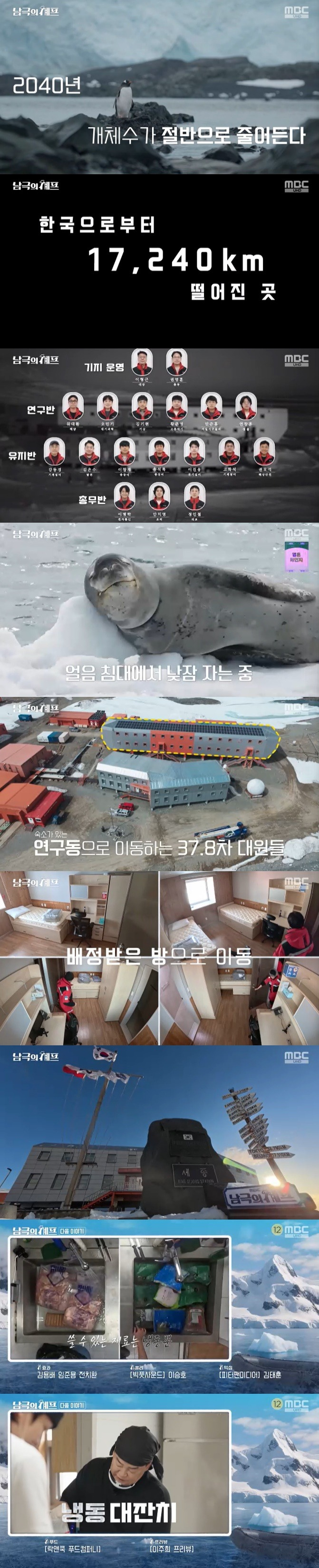 '남극의 셰프' 취지와 연출은 설득력이 있었다. '사명감 하나로 혹독한 남극 환경에 고립되어 살아가는 월동대원들을 위해 따뜻한 한 끼를 대접하는 과정을 담는 프로그램'. 백종원과 임수향, 수호, 채종협이 남극에 가는 과정에서 기후 온난화의 위기를 실제로 목격하고 그 심각성을 전달하는 것에는 성공했다.
