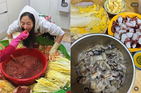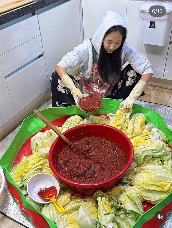 진재영은 18일 자신의 인스타그램에 "딸은 도둑이라고 맨날 엄마 김치 얻어가기만 하다가 엄마가 가르쳐준 첫 김장"이라는 글과 함께 김장을 하는 모습이 담긴 사진을 여러 장 게재했다.