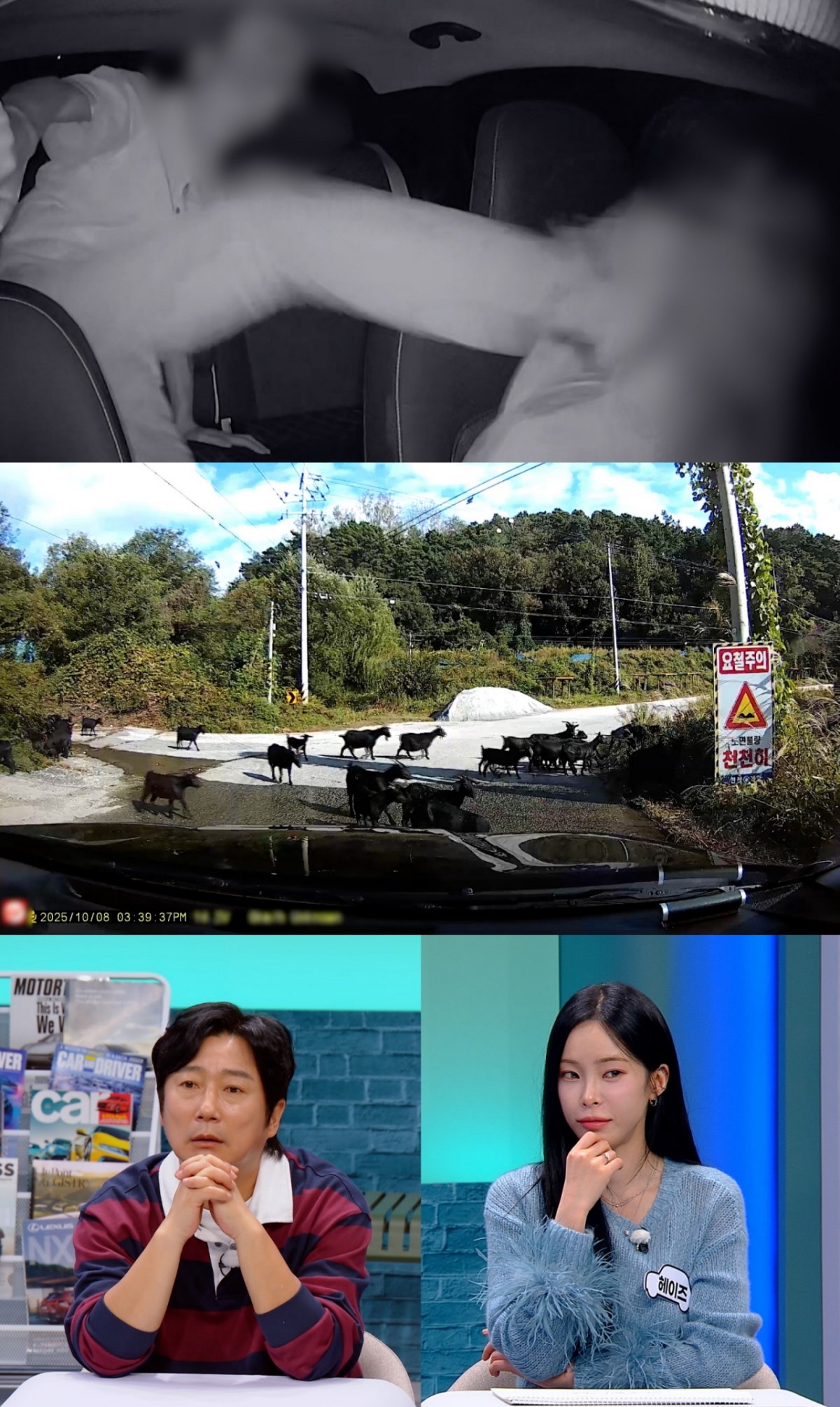 이어 '한블리'는 황당한 도로 위 사건, 사고 랭킹을 공개해 관심이 집중된다. 한 블랙박스 영상에는 시골길을 달리던 차량 앞을 약 100마리의 흑염소 떼가 가로막는 아찔한 순간이 포착된다. 블박차주(블랙박스 차주)는 "서행 중이었고, 주변에 다른 차량이 없어 사고를 피했다"고 전한다. 또 다른 영상에서는 갓길에 정차한 차량이 뒤차를 확인하지 않은 채 무리하게 진입하다 사고가 발생하고, 놀란 운전자가 급가속하며 반대편 주택까지 들이받는 황당한 상황이 이어진다. 이에 한문철 변호사는 "도로 진입 시에는 반드시 뒤를 확인해야 한다"며 안전운전을 재차 강조한다.