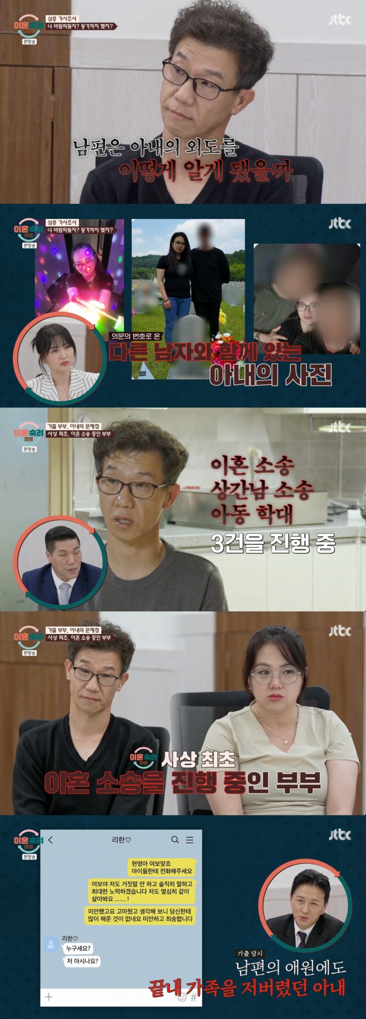 이에 서장훈은 아내에게 "(외도 사실을) 숨겨도 시원찮을 판인데 왜 보낸 거냐"고 물었고, 아내는 "(상간남이) 보낸 것"이라고 밝혔다.
