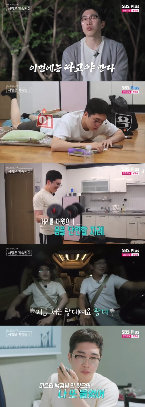 공부를 마친 24기 영식은 체력단련에 나서며 몸을 가꾸기 시작했다. 이때 미스터 백김이 깜짝 등장해 홀로 남겨진 24기 영식을 위로했다.