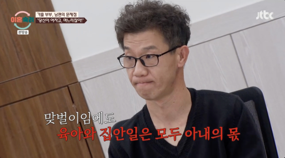 이에 남편은 제작진과 인터뷰에서 "여자니까, 애 엄마니까 잘할 거라고 생각했다. 그래서 저는 친구들 만나고 PC방 다니고 그랬다"고 당당하게 말했다.