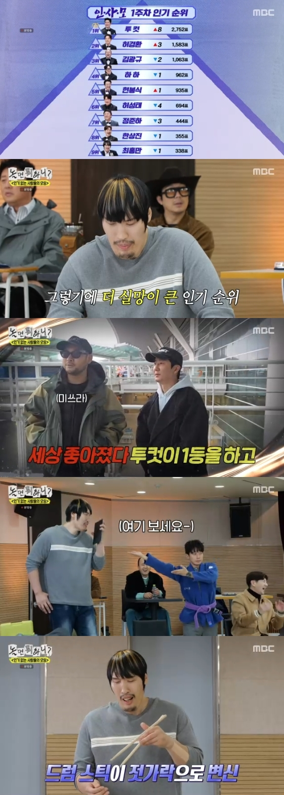 지난주 인기순위 9위로 최하위를 기록했던 투컷이 1위에 등극해 시선을 모았다. 하하가 "장난 아니다. 역시 팬들이 움직이니까 다르다"라고 감탄하자 유재석은 "투컷의 팬덤일 수도 있고 에픽하이의 후광일 수도 있다"라고 분석했다.