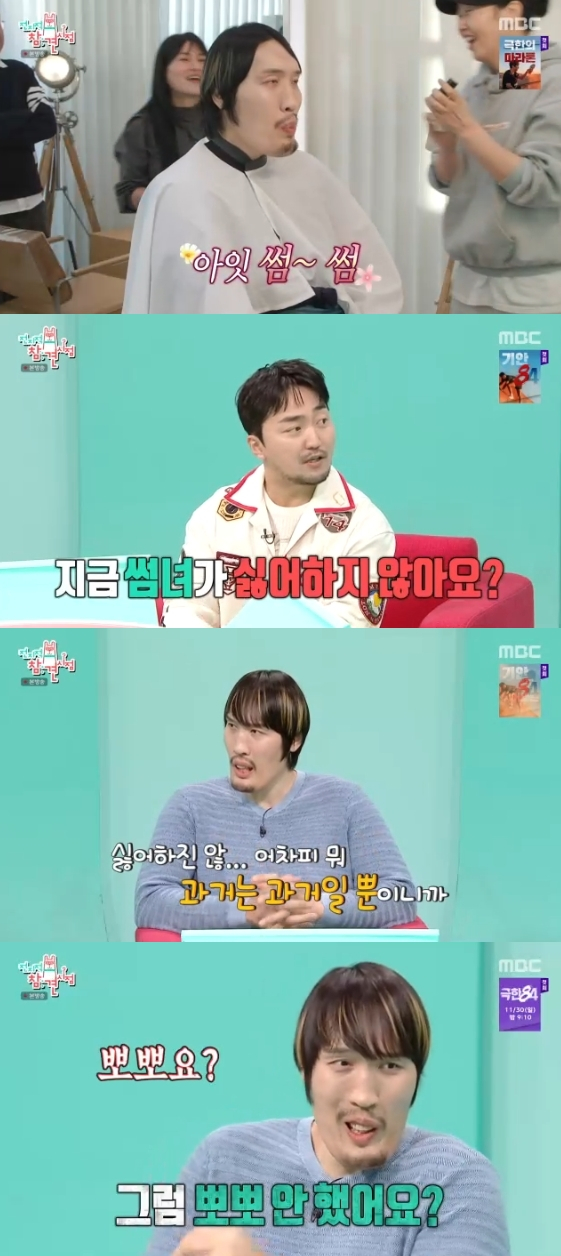 최홍만은 "뽀뽀 안 했냐"는 홍현희의 질문에 대답 대신 웃음을 터뜨리더니 "뽀뽀하면 안 돼?"라고 역정을 냈다.
