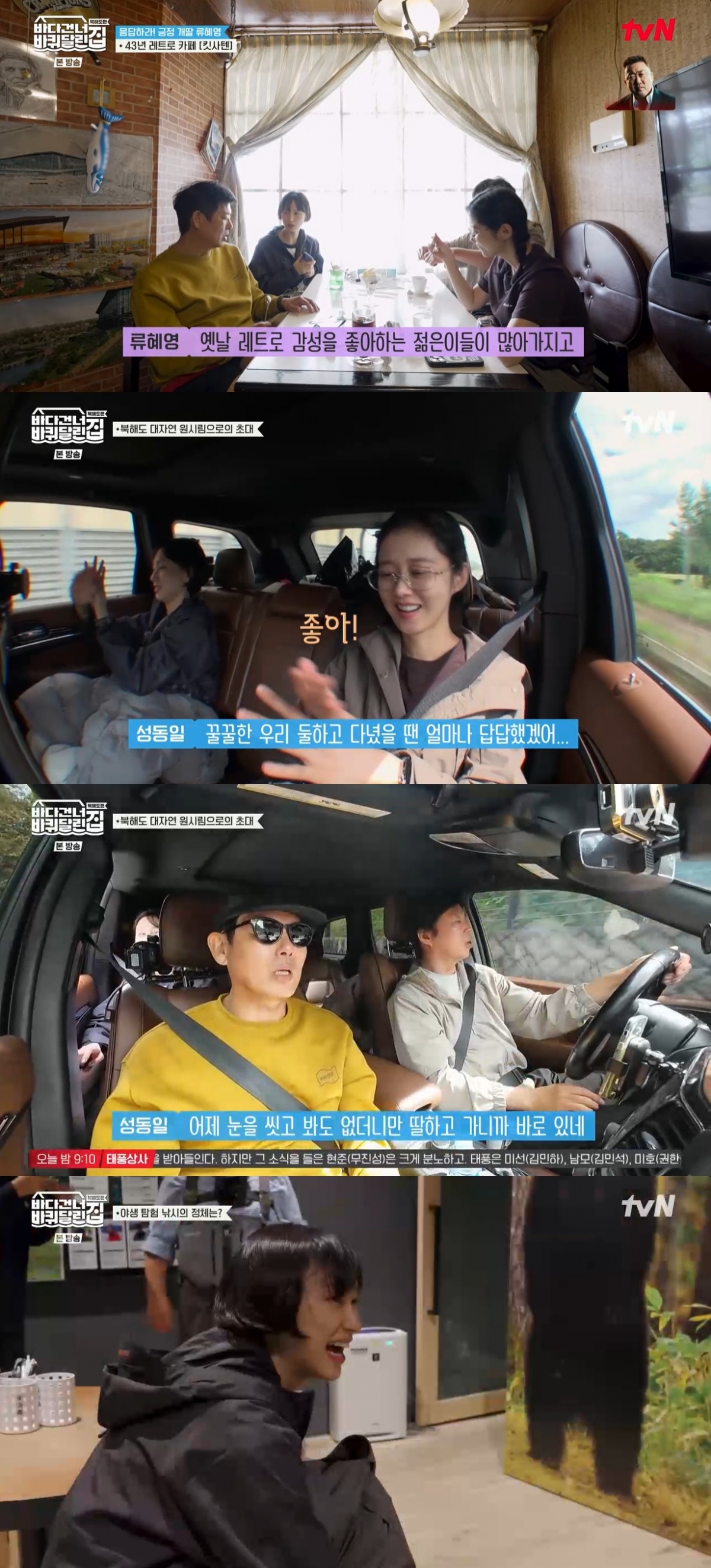 류혜영을 만나 즐거워하는 장나라를 보며 성동일은 "안 좋은 우리 둘이랑 다녔을 때 얼마나 심심했을까"고 말했다. 김희원은 "만만한 게 편의점 과자였을 거다. 우리랑 어울리는 거 쉽나"라고 물었다. 류혜영은 "너무 쉽다"라고 하자, 성동일은 "쟨 긍정적이다. 거울 사건 이후로 무조건 긍정이다. 하루 더 있었으면 좋을 텐데"라고 안타까워했다.