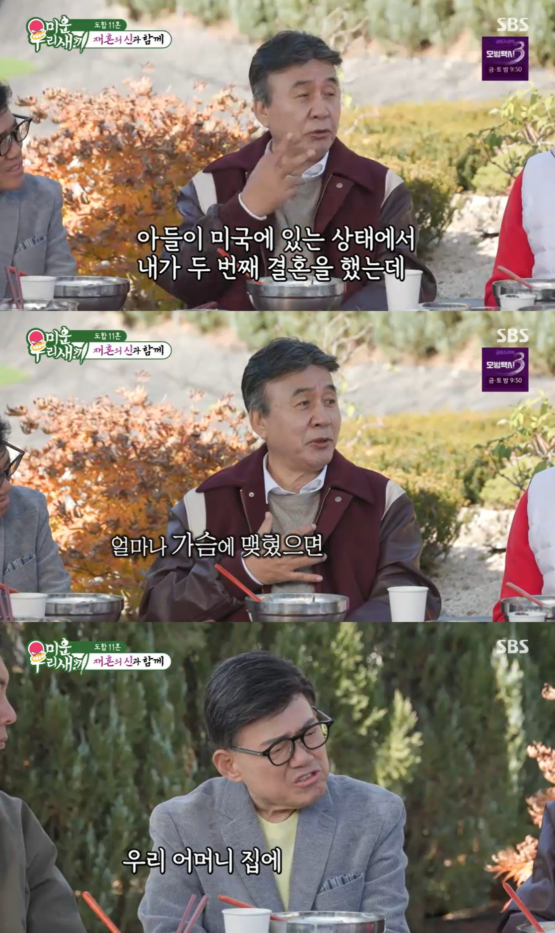 또한 "아들이 미국에 있을 때 두 번째 결혼했다. 얘가 처음으로 밤에 '얘기 좀 하자'고 했다. 그리고 물어봤다. 진짜 하고 싶은 얘기를 했다. '아빠 왜 이혼했냐'고 했다. 얼마나 가슴에 맺혔으면 이제 이런 얘기를 하나 싶었다"라며 "그래서 내가 솔직하게 다 얘기했다. 부부 관계에서부터 왜 문제가 있었는지 모든 얘기를 했다. 아들이 아무 말도 안 하고 듣고만 있다가 마지막에 '아빠 솔직하게 말해서 감사하다'라고 했다. 난 항상 그런 마음을 갖고 산다. 어떤 만남이라도 곤란한 상황이 오면 솔직하게 말한다. 그러면 상대도 믿는다"라고 조언했다.