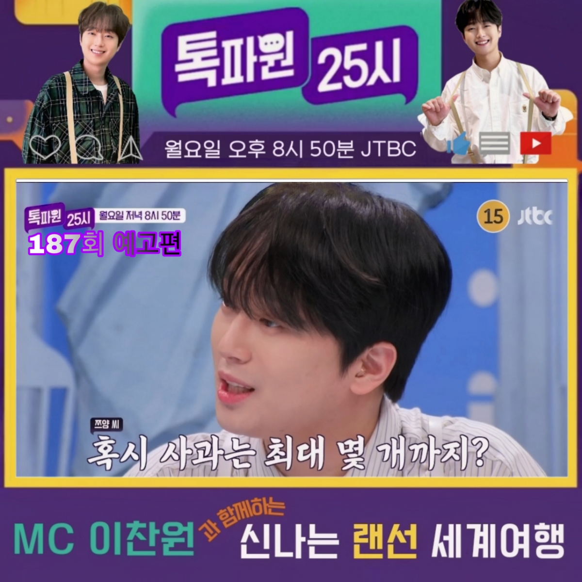 영상을 본 이찬원은 쯔양을 향해 "세잔이 좋아할 만한 질문을 하고 싶은데요. 혹시 사과는 최대.."라며 진지하면서도 위트 있는 질문을 해 출연자들뿐만 아니라 시청자들에게 유쾌함을 선사했다.
