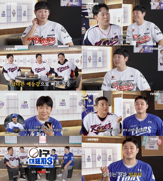 24일 공개되는 티빙 오리지널 '야구대표자: 덕후들의 리그' 시즌3(이하 '야구대표자3') 7, 8화에서는 각각 두산 베어스 정수빈, 삼성 라이온즈 김지찬과 최원태가 '국대 출신 3인방' MC들과 올 한해를 되짚어보고 2026 시즌을 준비하는 각오를 전한다.