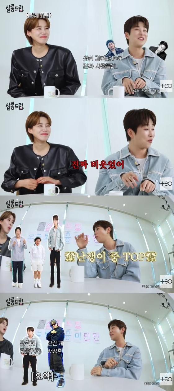 이에 장도연이 "그 모임에 키 제한이 있냐"라고 너스레를 떨자 딘딘은 "셋이 걷는데 사람들이 비웃었다. 쳐다보는 눈빛이 그랬다"라고 답해 웃음을 안겼다.
