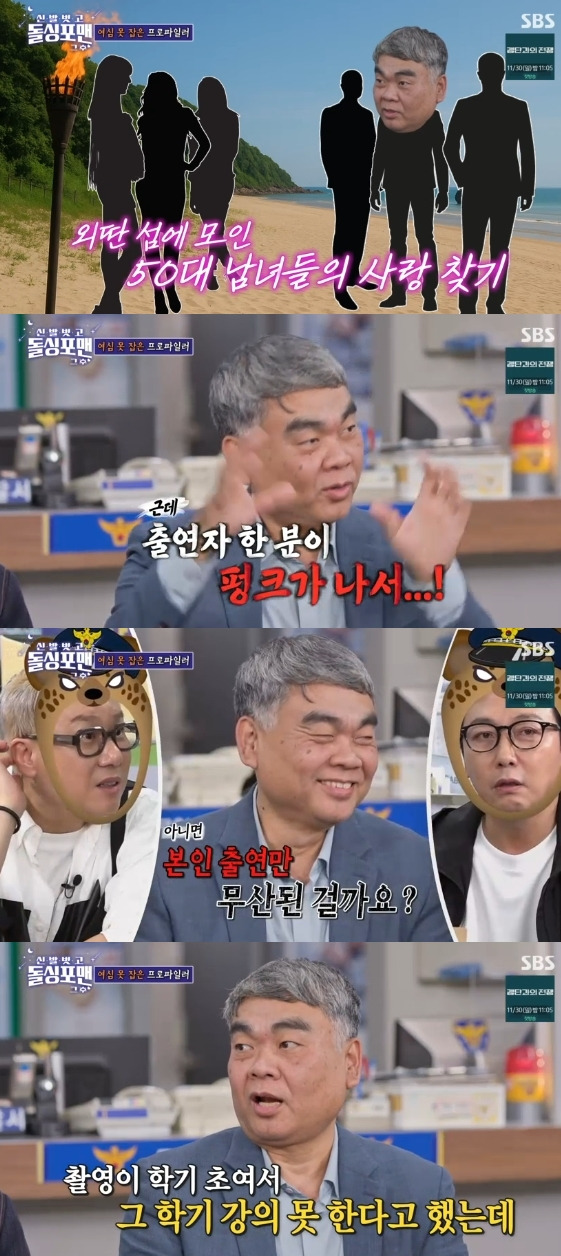 이날 배상훈은 56년 차 솔로임을 밝히며 "'나는 솔로'에 거의 출연까지 할 뻔했다. 섬에 50대 서너명을 몰아넣고 못 나오게 한 뒤에 알아서 결정하라고 하는 기획이었다. 그중에 출연자 한 분이 펑크가 나서 무산됐다"라고 털어놨다.