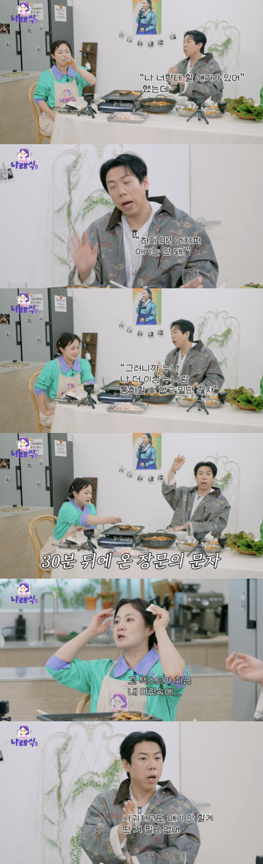 그러고 나서 30분 뒤 박나래에게서 장문의 문자가 도착했다고 밝혔다.