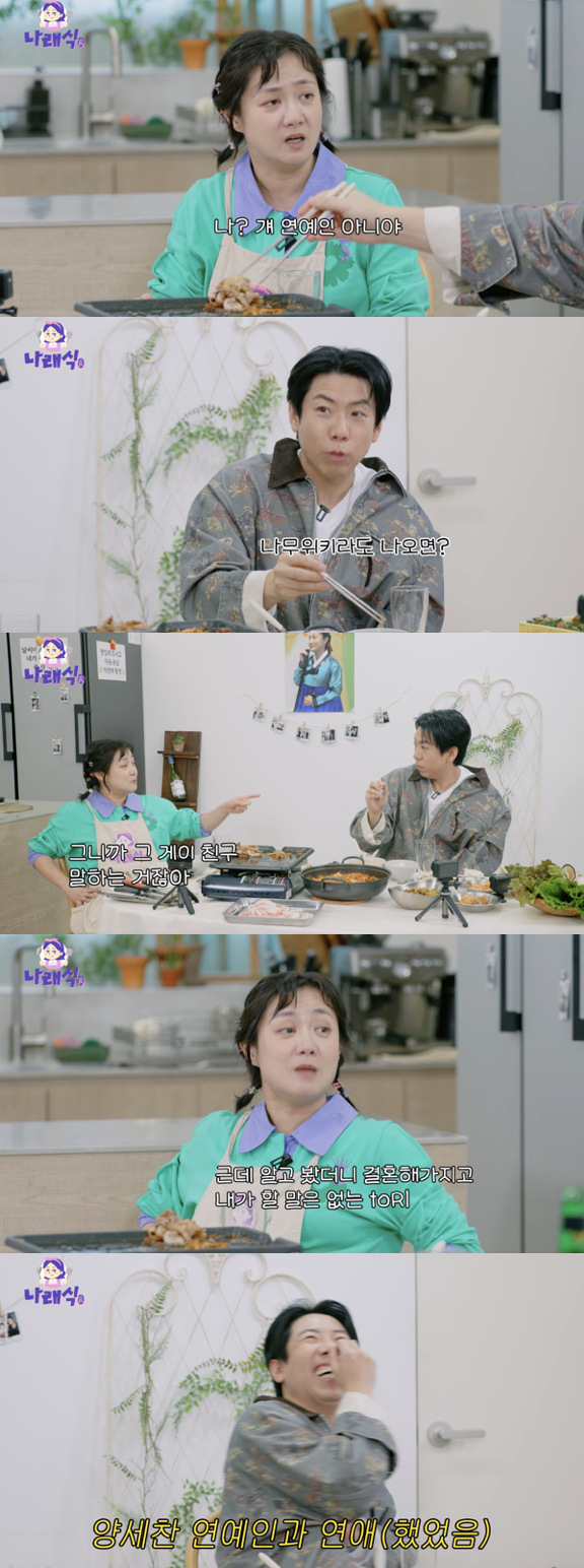 이날 박나래는 양세찬에게 "솔직하게, 연예인 만난 적 있죠?"라고 제작진 질문을 대신해서 추궁했다. 그러자 양세찬은 "누나도 연예인 만났잖아"라고 맞받아쳤다.