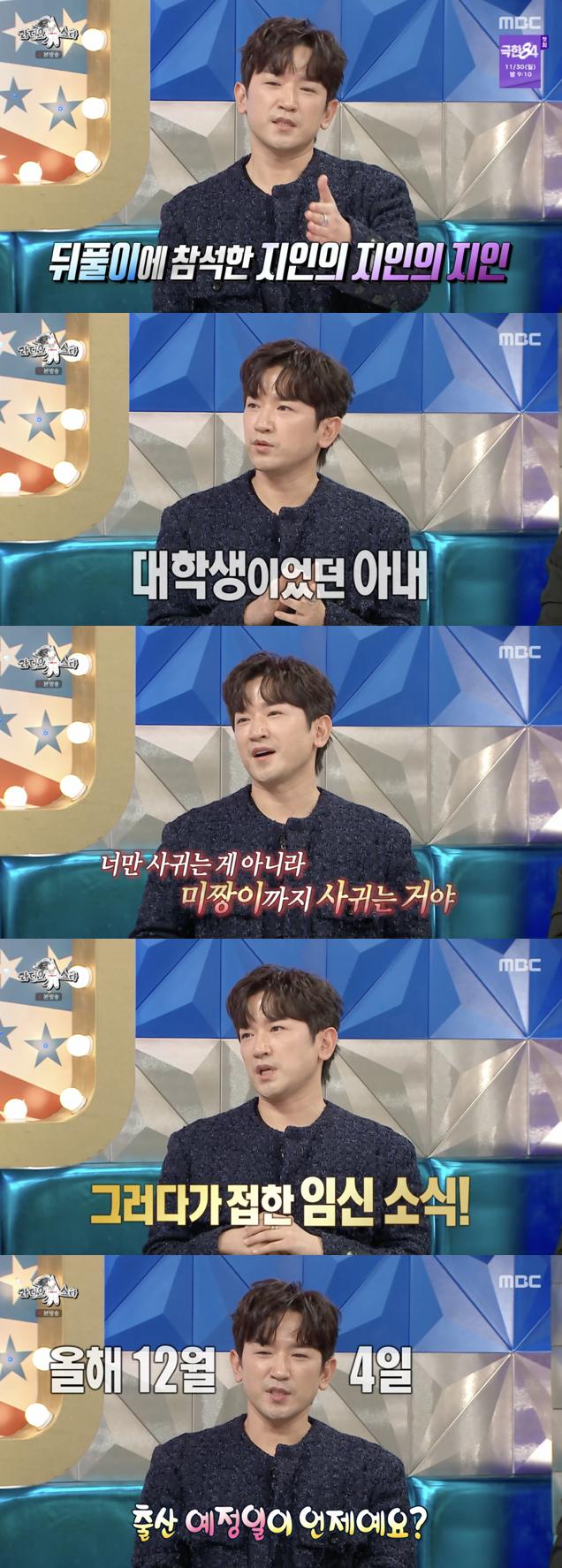 현재 출산 예정일은 12월 4일. 이민우는 "3주밖에 안 남았다. 지금 37주다. 녹화 도중 뛰쳐나갈 수도 있다. 대기하고 있다"고 말하며 설렘과 긴장감을 드러냈다.