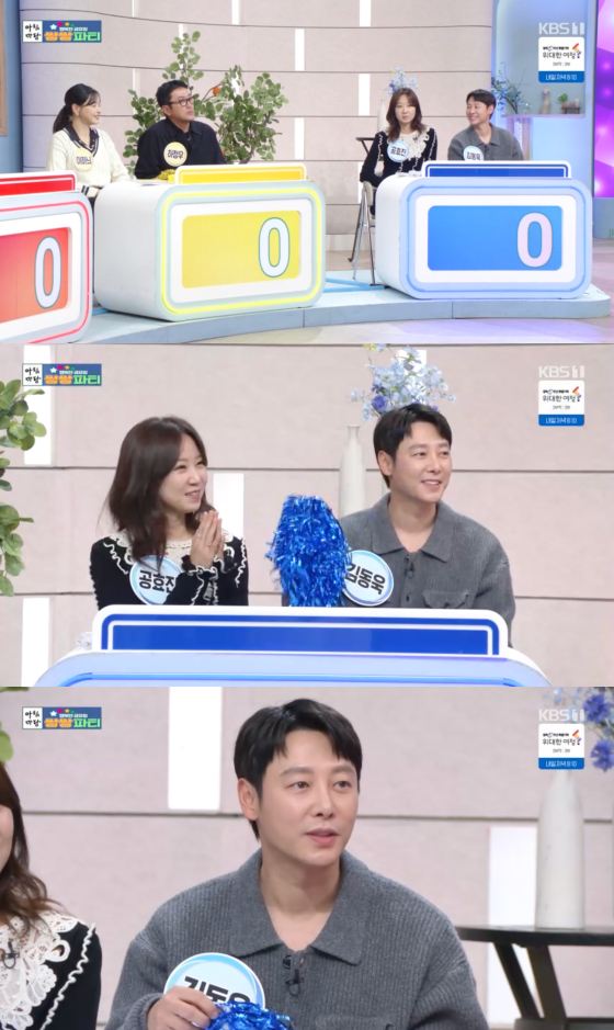 28일 오전 방송된 KBS 1TV '아침마당'의 '행복한 금요일 쌍쌍파티' 코너에는 영화 '윗집 사람들' 감독 겸 배우 하정우와 공효진, 김동욱, 이하늬가 출연했다.