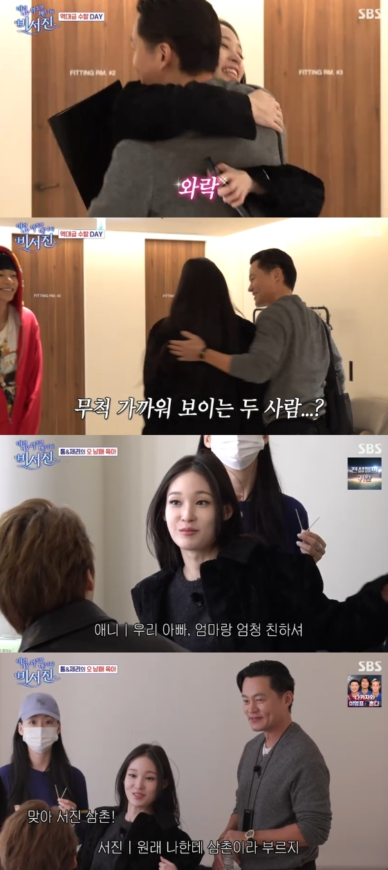 이날 이서진은 애니를 보자마자 살갑게 껴안으며 등을 토닥였다. 그는 "쟤네 엄마랑 나랑 초등학교 때부터 알고 지냈고 쟤네 아빠랑은 고등학교 때부터 아는 사이다. 난 애니 태어날 때부터 봤다. 저렇게 나오자마자 잘되니까 난 너무 기분 좋다"라고 밝혔다.