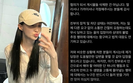 이어 "친부의 잠적 및 차단 상태는 여전하며, 저는 일체 다른 요구 없이 소통만 간절히 요청하는데도 무시당하고 있는 을의 입장에서 상대의 불법 추정 행위에 대해서는 함구하고 법적 대응도 연기하고 있다"고 설명했다.