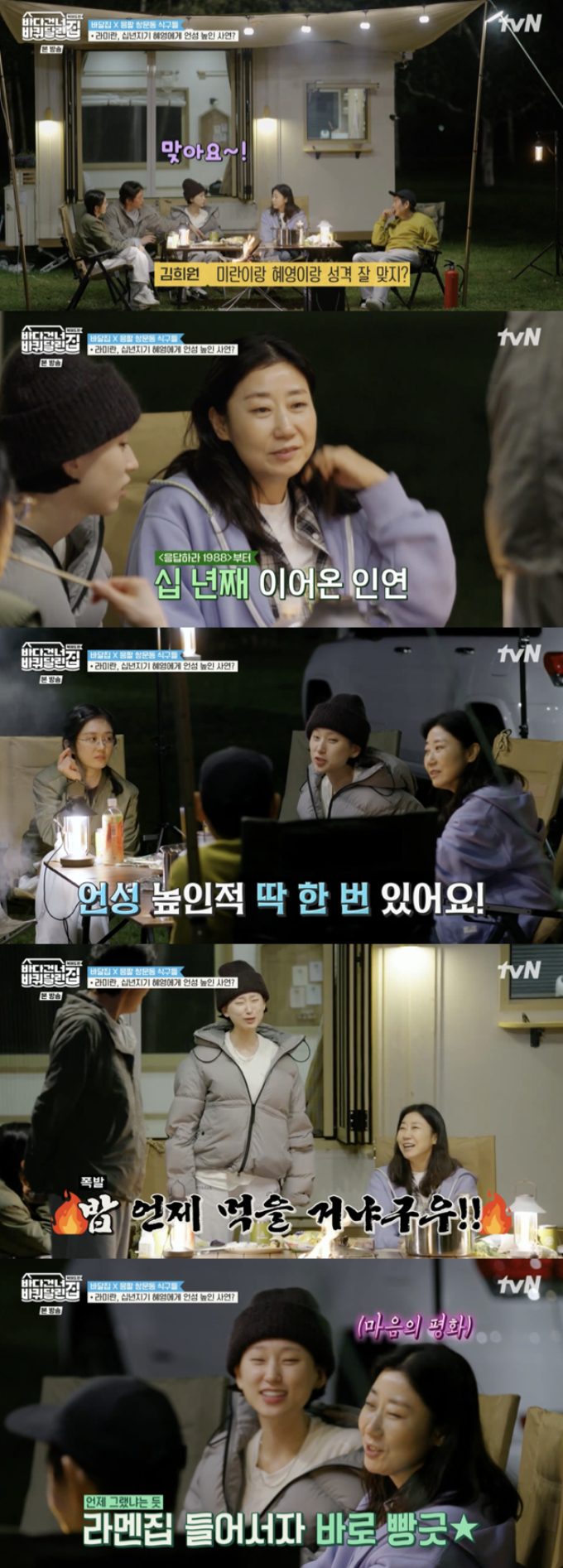 한편 김희원은 이날 처음 만난 류혜영에 대해 "처음 봤는데 성격이 너무 밝고 솔직하다. 미란이랑 잘 맞지?"라며 궁금해했고, 류혜영은 "미란 언니랑 저는 10년째 인연이다. 그런데 언성 높인 적 딱 한 번 있었다"고 밝혔다.