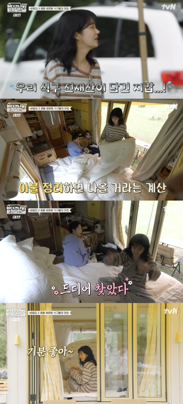 이를 지켜보던 라미란은 장나라가 '쓰읍 하'를 반복하자 "뭐 매운 거 자셨어?"라고 농담을 던져 폭소를 유발했다. 결국 장나라는 이불을 정리하던 중 한쪽에 놓여 있던 지갑을 발견하고 환호하며 아침의 소동을 마무리했다.