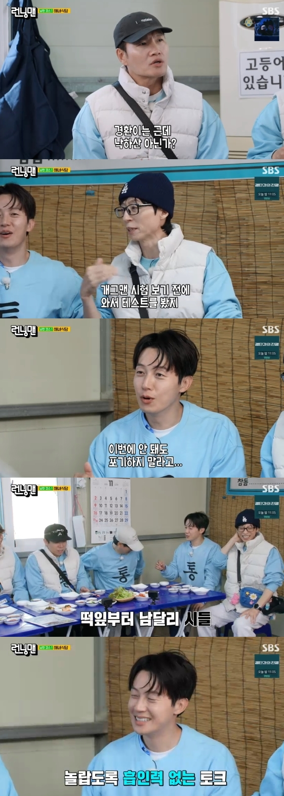 이날 유재석은 "허경환이 내 직속 후배다. KBS 공채 개그맨이다"라고 소개했다. 이에 김종국이 "낙하산 아니냐"라고 의문을 표하자 허경환은 "무슨 소리냐. 걸어 들어왔다"라고 발끈해 웃음을 전했다.