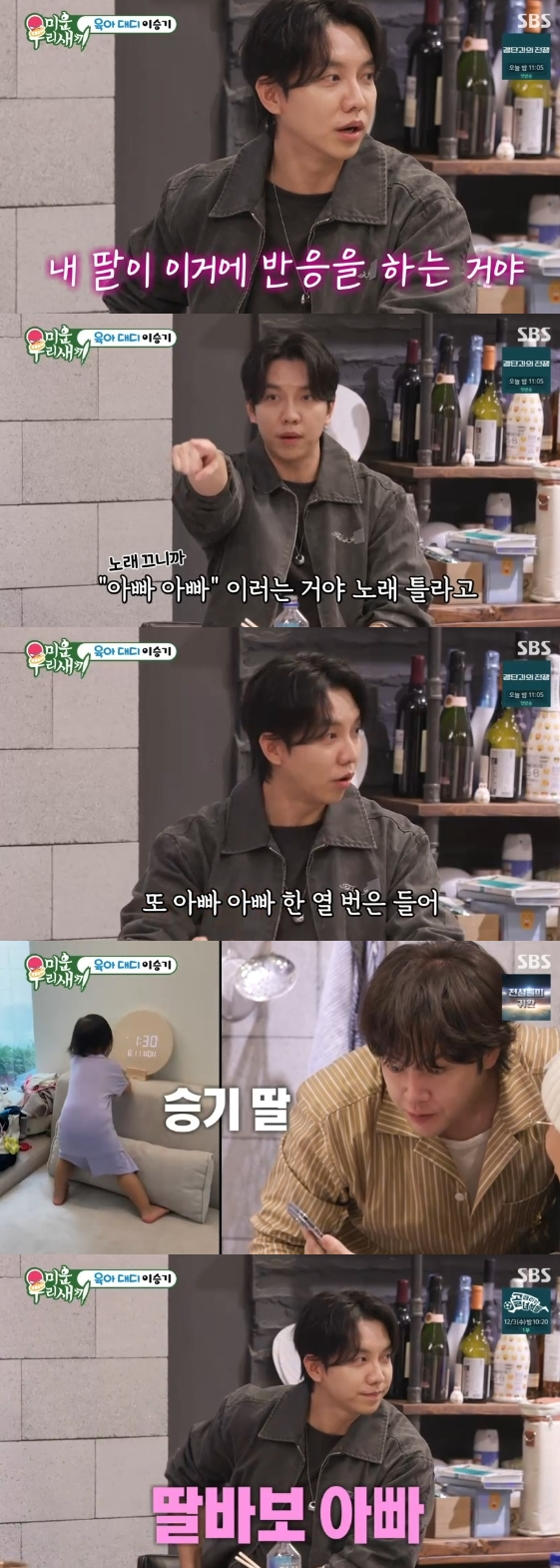 이승기는 딸의 영상을 사랑스러운 눈으로 바라보더니 "이런 맛에 행복하게 살고 있다"라고 말했다.