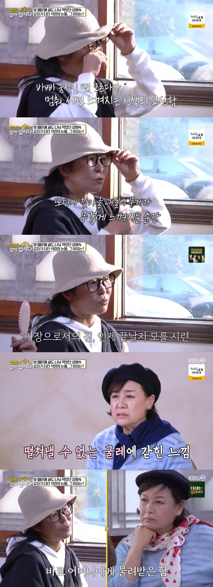 이에 황석정은 "나는 버스를 타면 그렇게 눈물이 난다. 아직도 힘드니까 매일이 너무 고단하다. 쉬고 싶기도 하고. 이렇게 계속 사는 게 고될 때가 있다"라고 말했다.