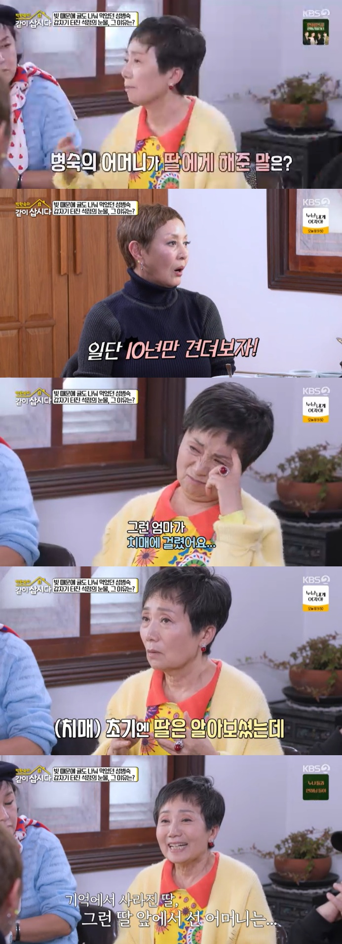 그는 "하루에 4시간 자면서 일주일 내내 일했다. 너무 감사하게 여기저기서 일이 들어왔다"고 말했다. 성병숙은 "우리 엄마가 '하루라도 젊었을 때 힘든 일 겪는 게 낫다'라면서 힘을 줬다. 그전엔 내가 '살아서 뭐해' 생각했는데, 엄마가 '일단 10년만 견녀보자'고 했는데 그런 엄마가 치매에 걸렸다. 나중엔 나도 못 알아봤다"고 안타까운 사연을 전했다.