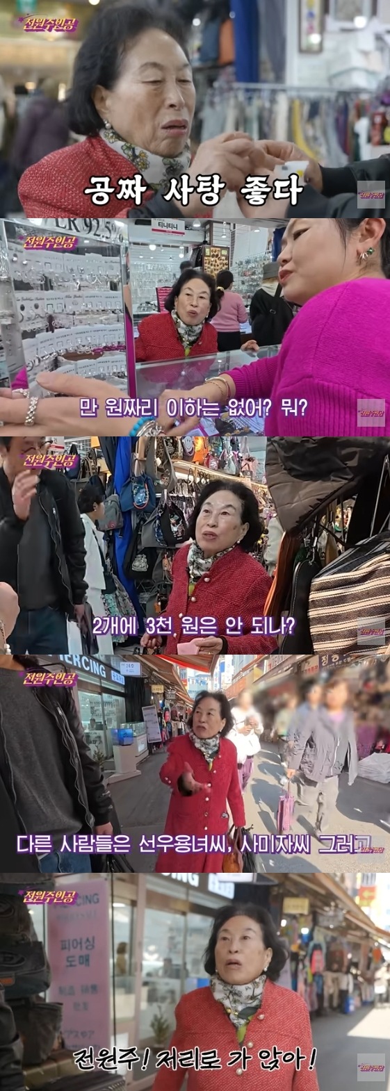 시장에 도착한 전원주는 상인들의 인기를 한 몸에 받으며 쇼핑을 시작했다. 그는 양말, 넥타이, 사탕 등을 고르며 서비스를 요청하는가 하면 보석 가게에 들렀다가 만원이 훌쩍 넘는 가격에 곧바로 발길을 돌렸다.